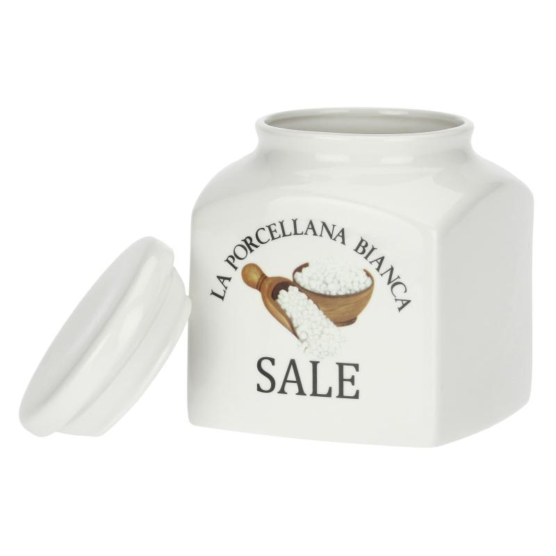 Scopri il barattolo in Porcellana Bianca, progettato per conservare il sale con eleganza e praticità. Il suo design si adatta perfettamente a svariati stili di cucina. Capiente, funzionale e decorato con cura, è l’accessorio ideale per una cucina sempre o